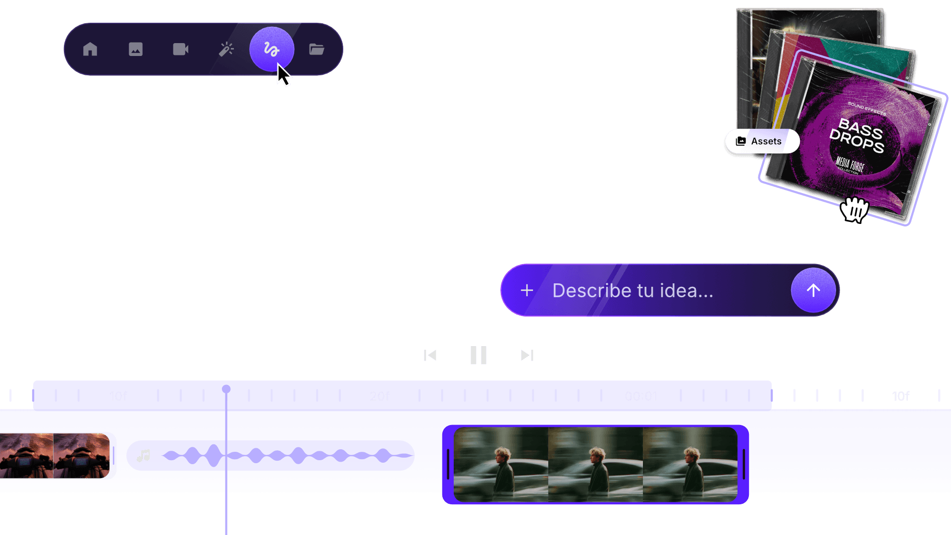 Combina creatividad humana e IA para crear íconos, animaciones y recursos gráficos que no existen en ninguna librería. Elementos que se integran de forma natural en cualquier escena.